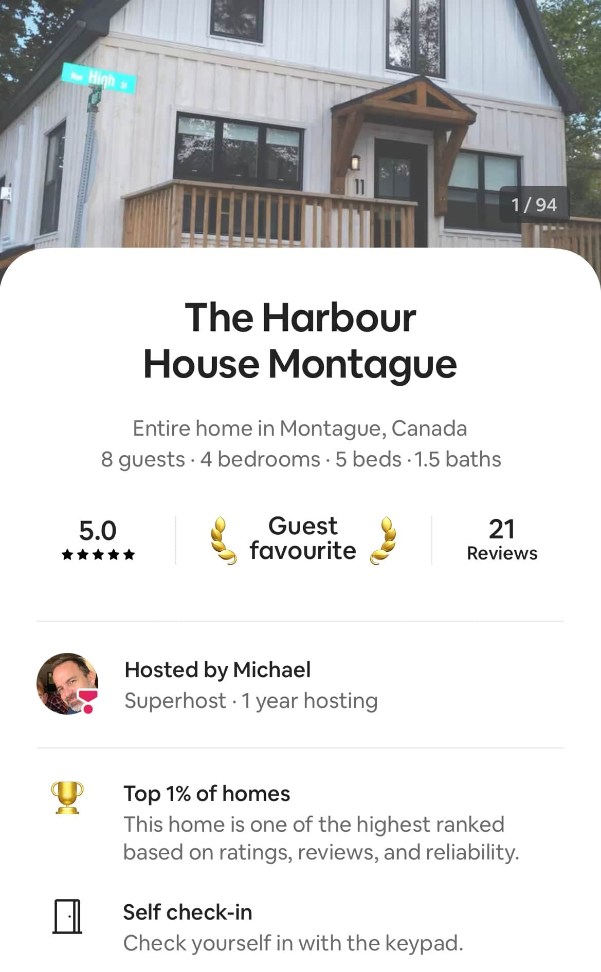 Only five star reviews for Airbnb guests that have stayed at The Harbour House Montague!
